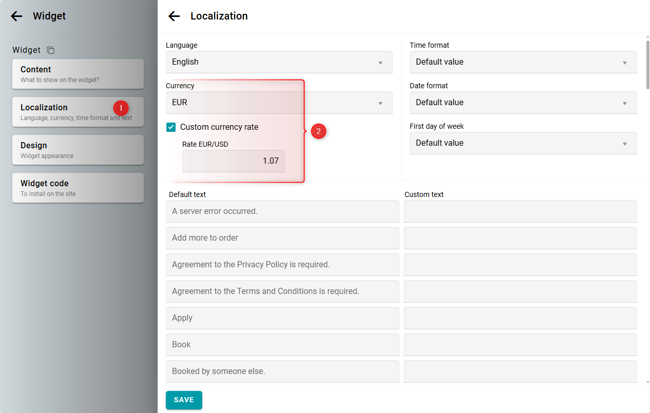 Please note that all payments are always processed in the account's base currency. The same applies to messages sent to customers. The widget currency is used for display purposes only, to show prices for your clients' reference.