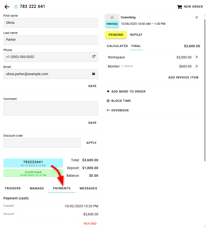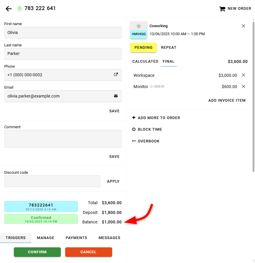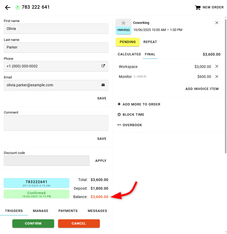 A positive balance is shown in black. This indicates that the customer has overpaid this amount.