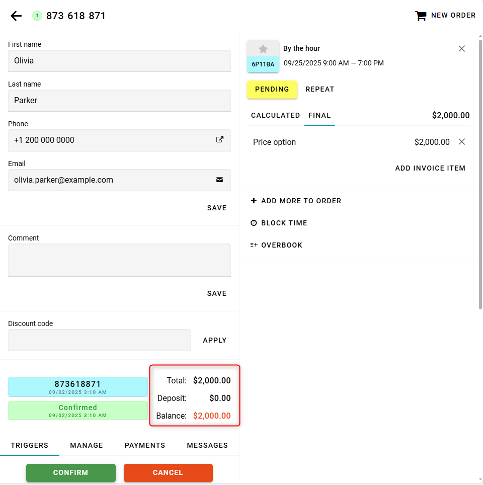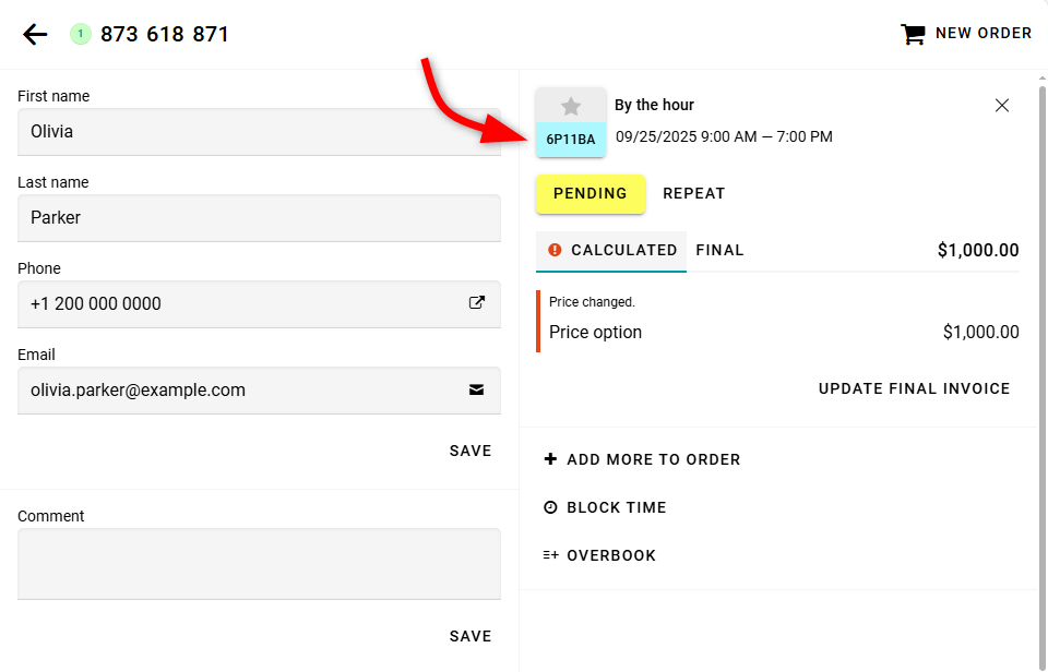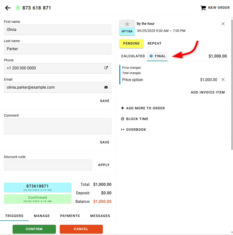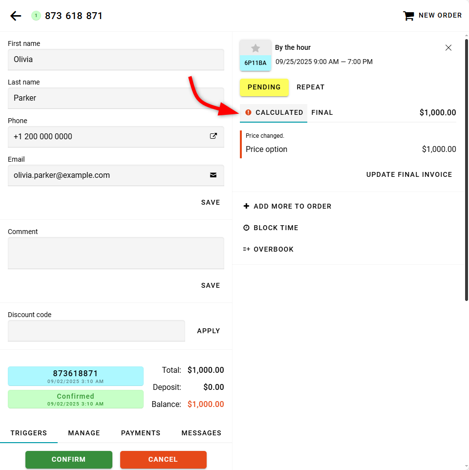 If you change the price, a warning will appear indicating that the price has changed. This warning will be shown on the Calculated tab in the order details.