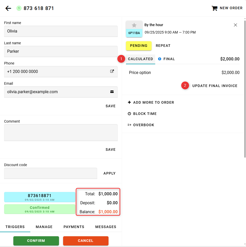You can also click Update final invoice on the Calculated tab.
