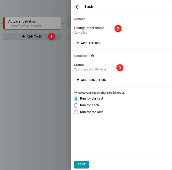 Set the condition to: status is "Pending".