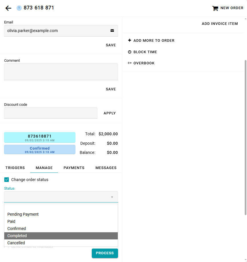 The order status informs both customers and the manager about the current stage of the entire order's processing. When an order is created from the widget, it is assigned the first status in the list.