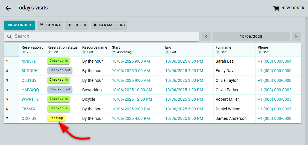 You can also display a button to change the reservation status directly in the table by adding the Reservation status column.