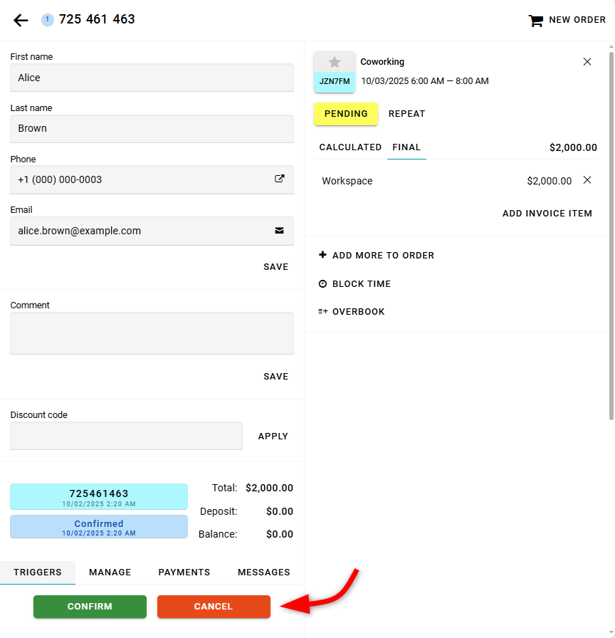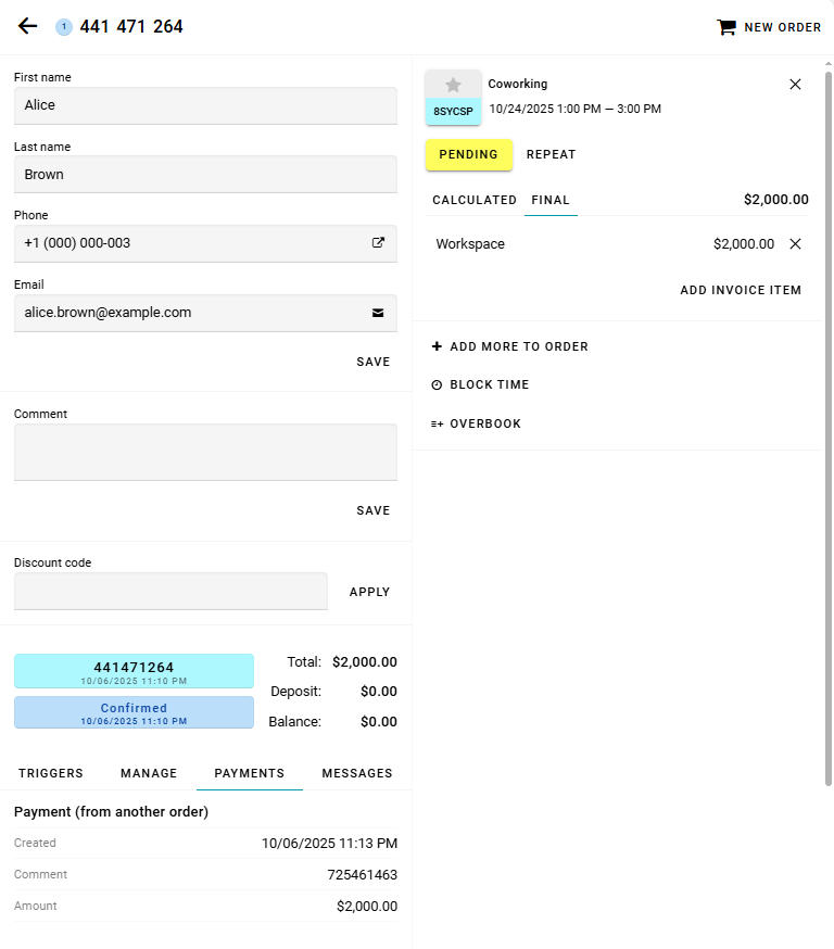 Next, open the order to which you want to transfer the funds.
