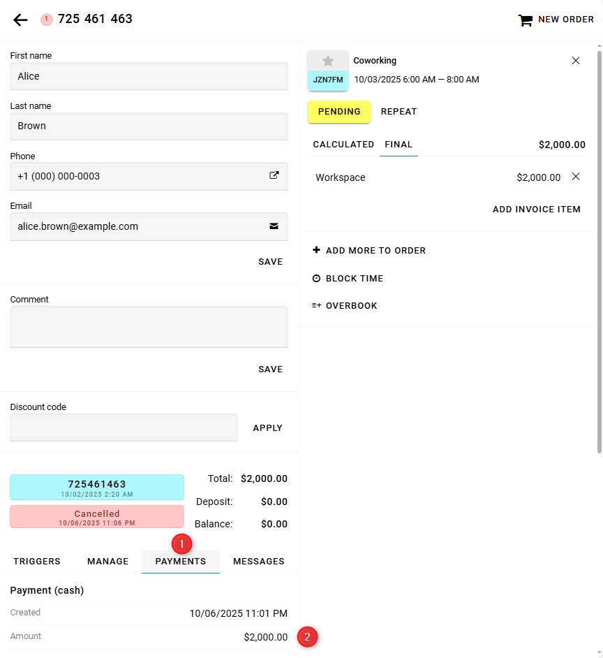 Go to the Payments tab to view the payment amount.