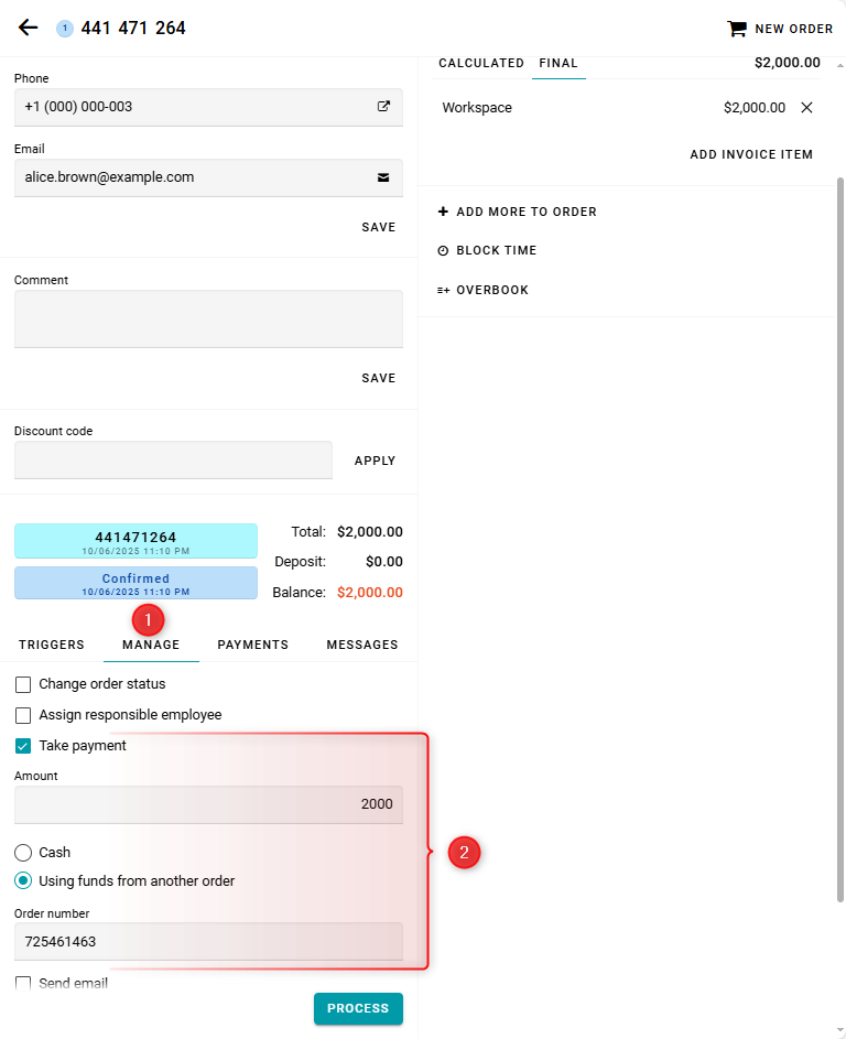 Choose the payment type — Using funds from another order.