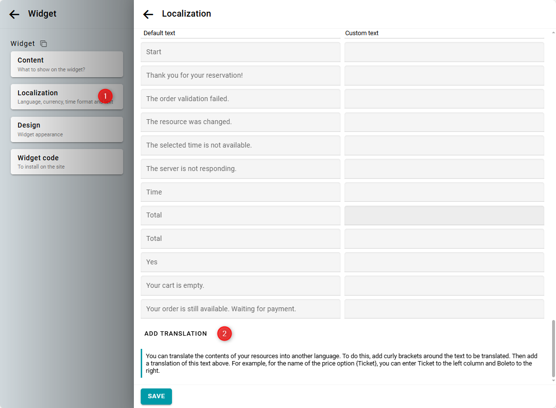 To do this, set a template for the text displaying the remaining places. Go to the Localization panel in the widget settings.