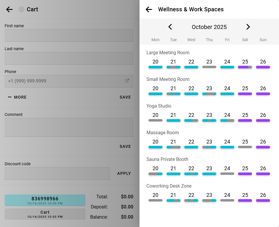 Then, create a manager reservation. All resources will be displayed together on a single calendar.