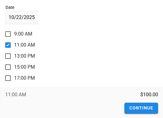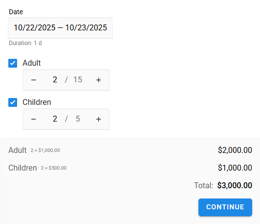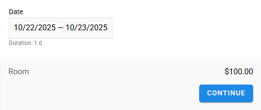 A resource may exist as a single instance. For example, a room. In this case, create one price option for the whole resource and set the price. With this setup, the customer only needs to select the time of their visit, not a price option.