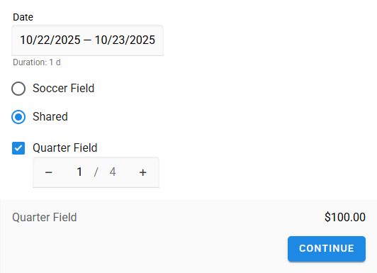 You can combine shared price options with price options for the whole resource. For example, you might allow customers to book the entire football pitch or just a section of it.