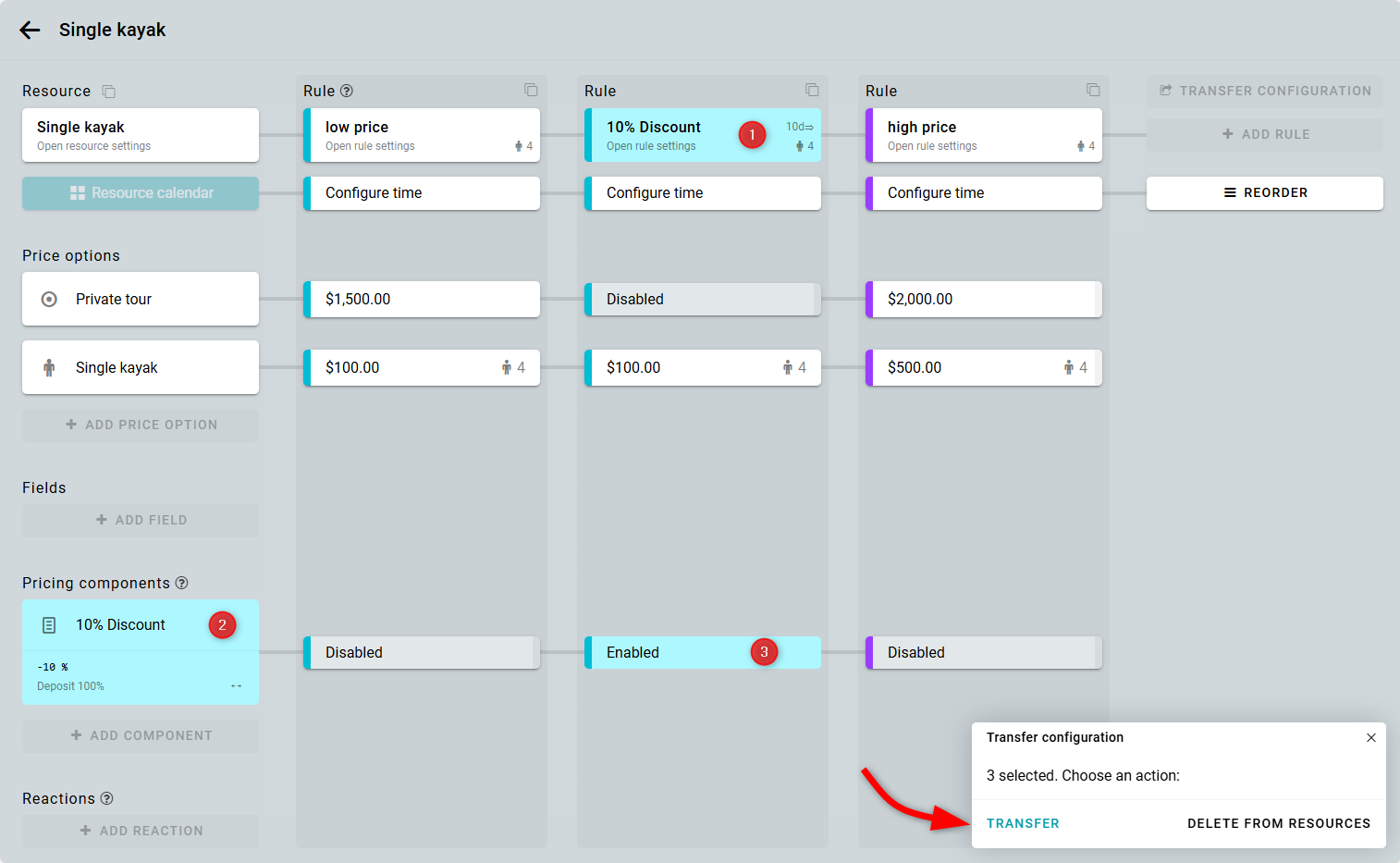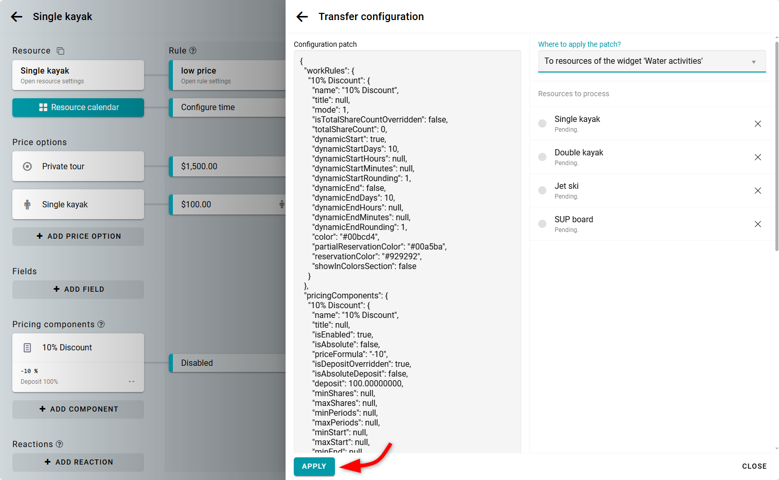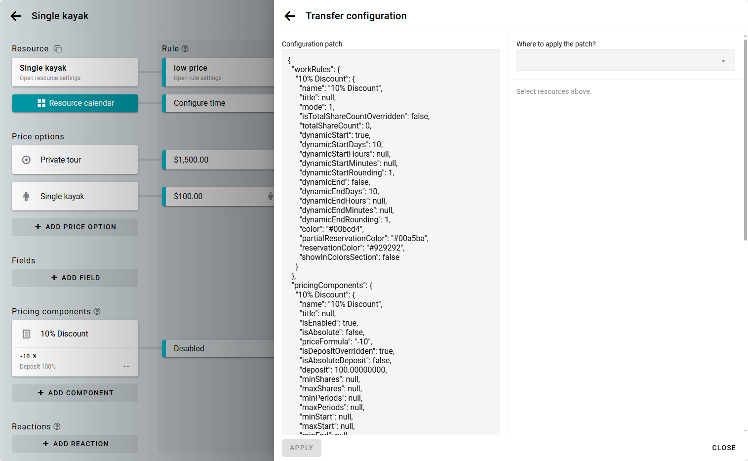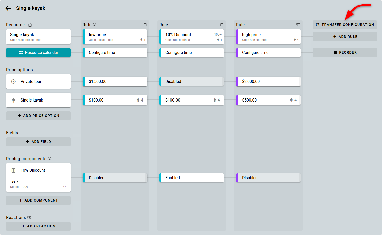 To transfer settings, open the resource where the desired configuration is already set up. Click the Transfer Configuration button in the top right corner.