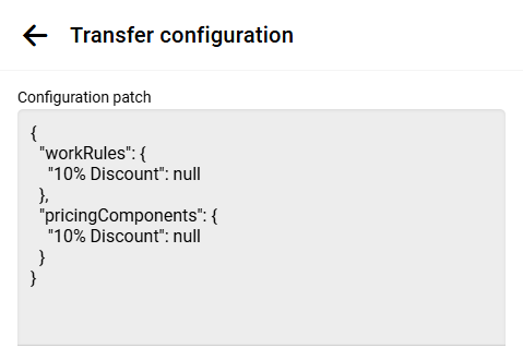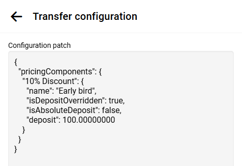 If needed, you can remove certain settings from the configuration patch to leave them unchanged in the resources. For example, you can bulk update the deposit settings of a pricing component without changing its formula or other settings: