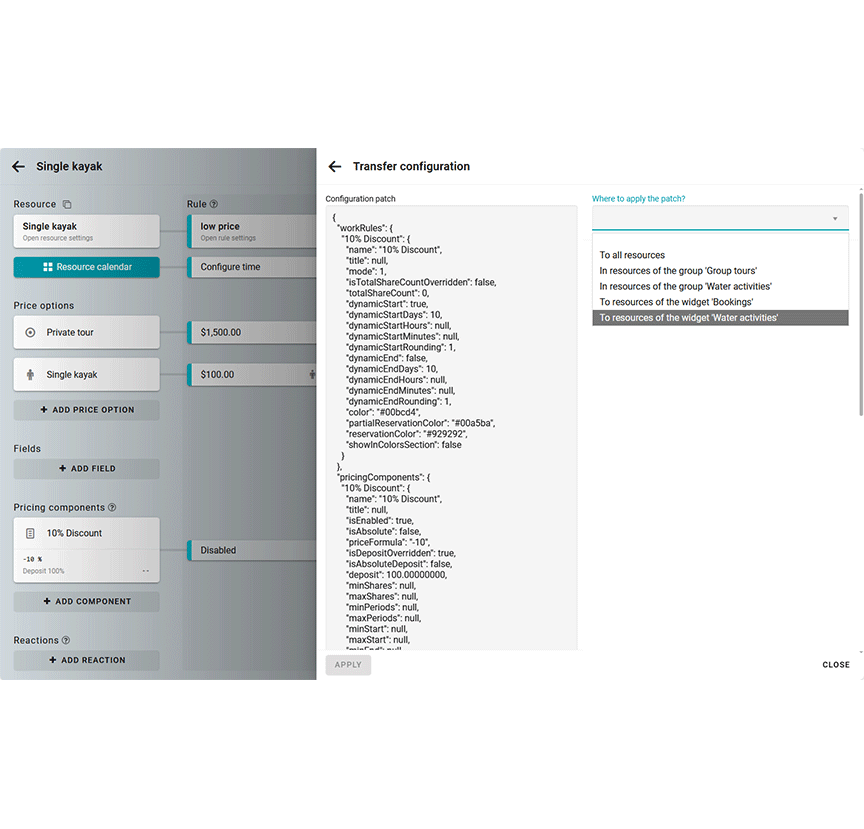 With the configuration patch, you can modify or delete any settings except for resource and field images, and mutual resource blocking settings.