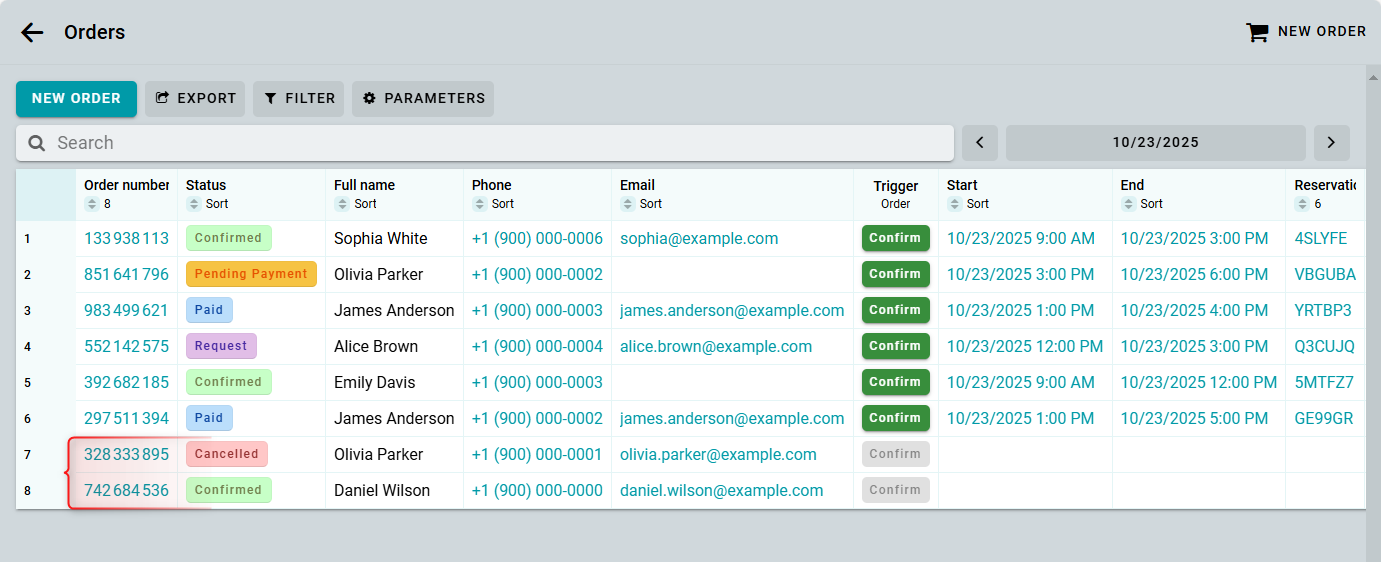 To display empty orders, make sure to add at least one column with order data to the table. This is necessary because, for these orders, all reservation columns will be empty. You can learn how to add columns