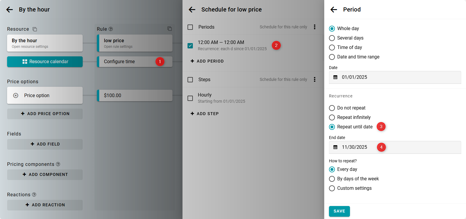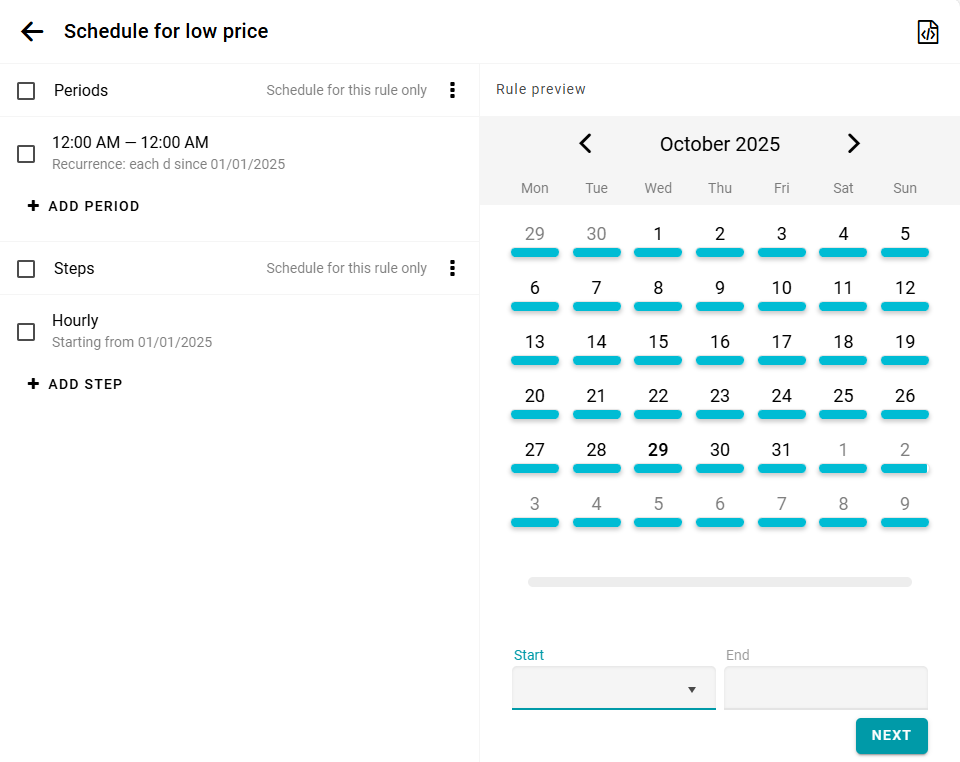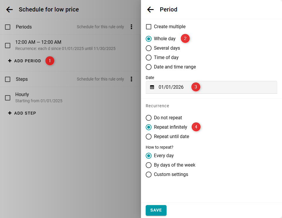 Next, create a new period starting on January 1 with the same daily recurrence. As a result, you will have the following periods: