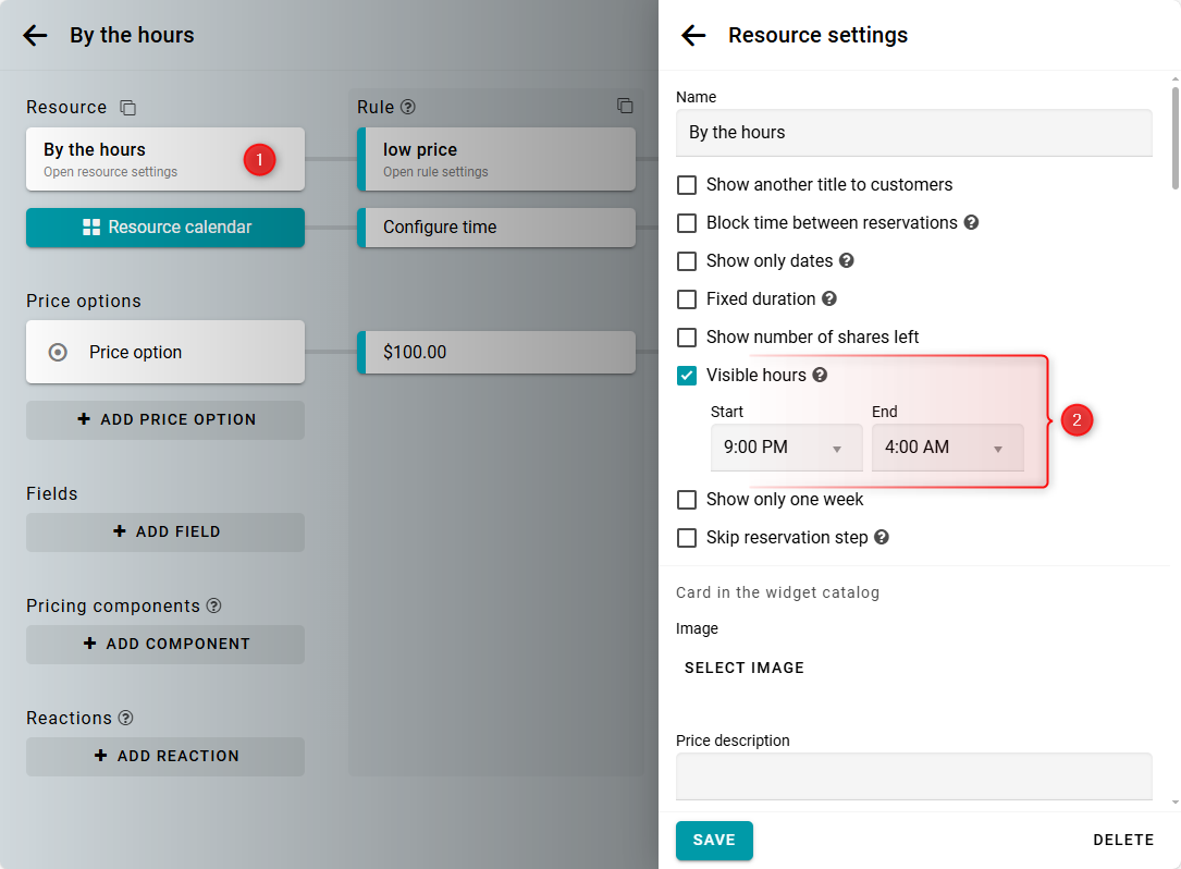 Open the resource settings. Check the Visible hours option and specify the desired start and end times.