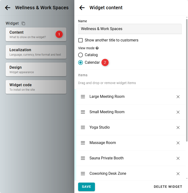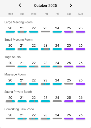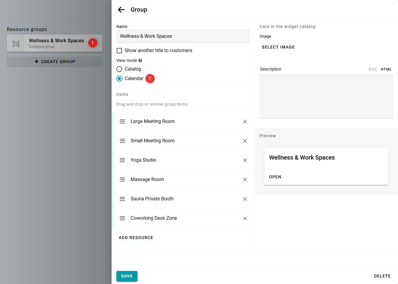 If you want to organize resources for easier navigation, use the widget mode — Catalog. Add resource groups to the widget. Then, in each group's settings, set the mode to Calendar.