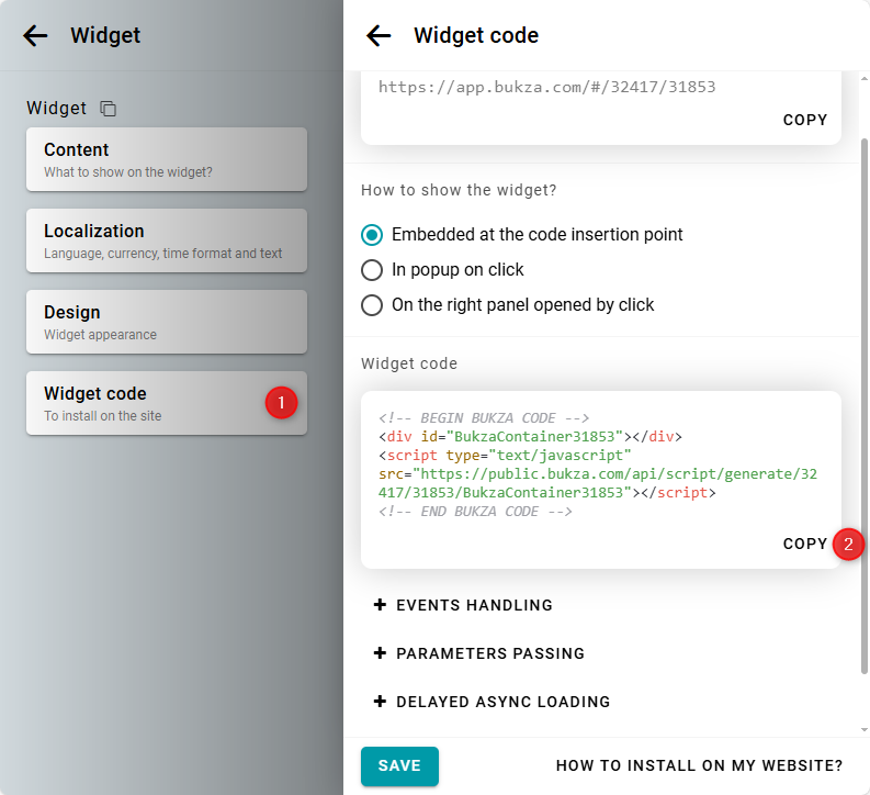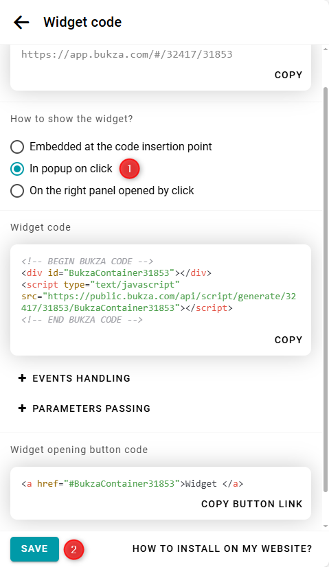 Next, return to the Widget code panel, select How to show the widget, and save your changes.