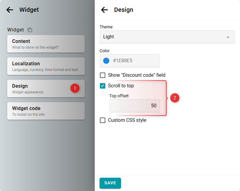 When navigating between widget screens, the widget is automatically scrolled to the top of the viewport for user convenience. However, if your site has a fixed top bar, this bar may partially cover the widget.