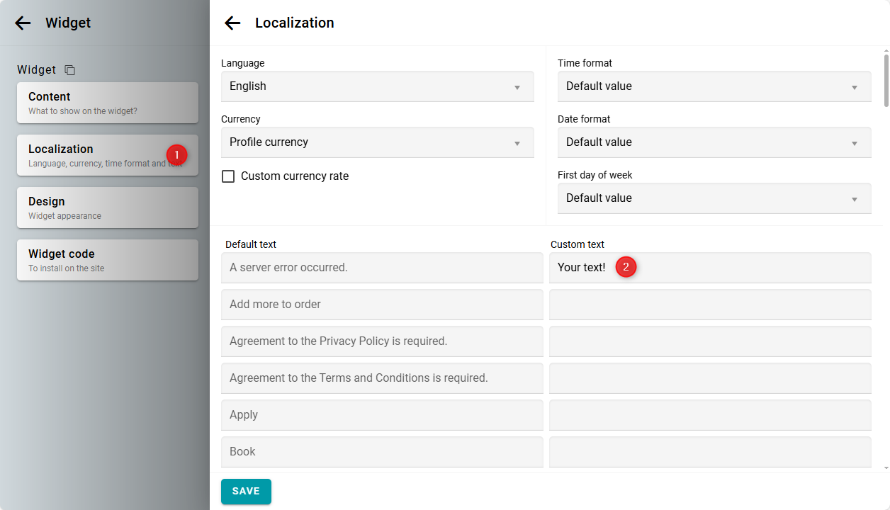 Yes, you can easily customize any widget text in the Localization panel. You can also select from 27 available widget languages.
